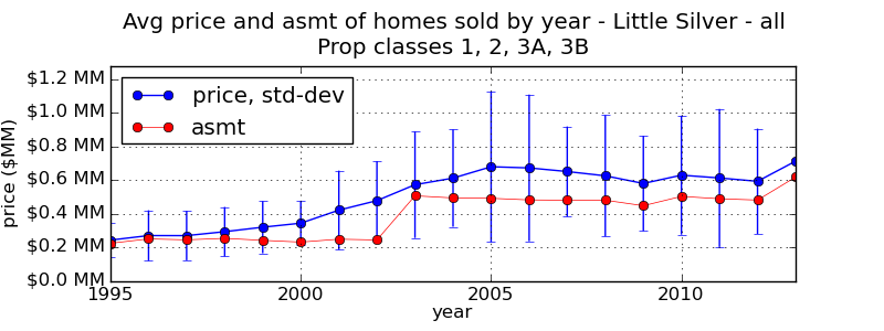 - The average assessed value of all properties in Little Silver in classes 1, 2, 3A, and 3B went up by 7.40% between 2012 and 2013.