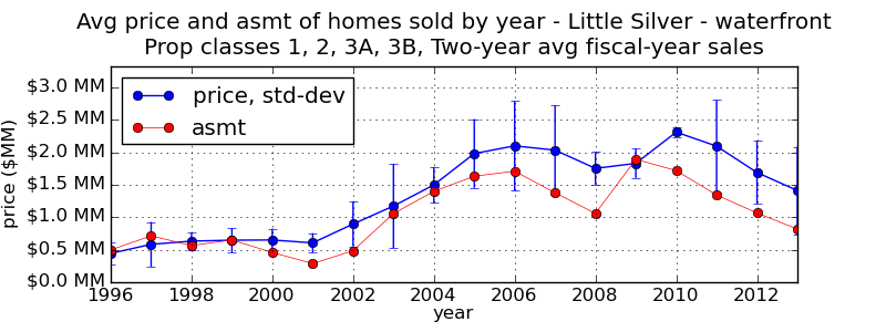 - The average assessed value of waterfront Little Silver properties the same classes and period went up by 8.73%.